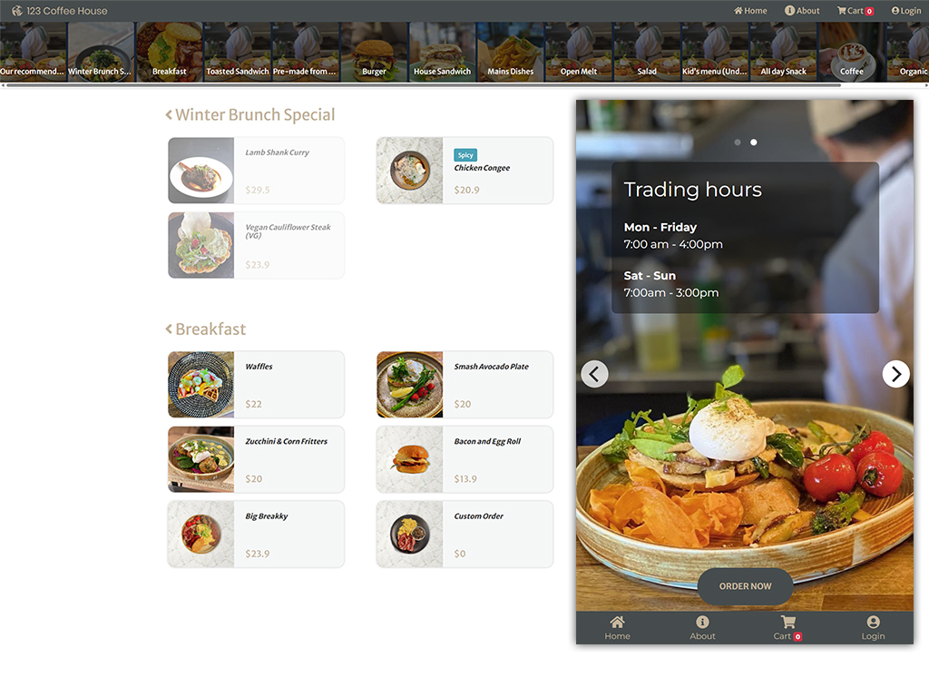 Building a customized Online ordering system for 123 Coffee House, a cafe in Cooma